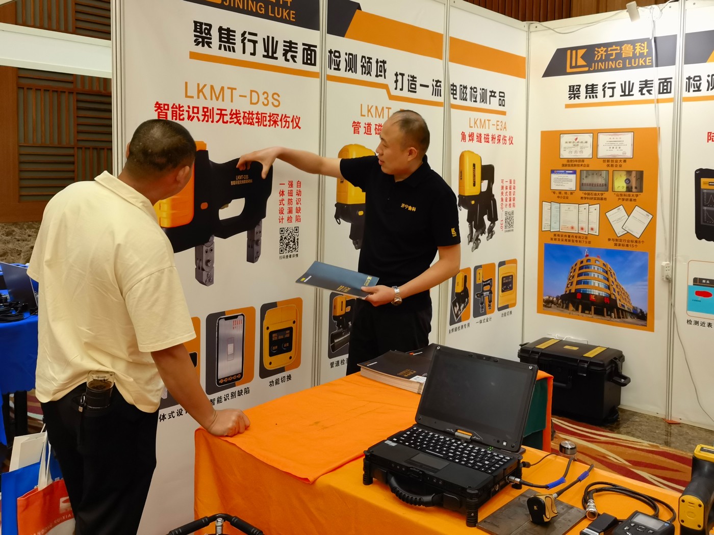 濟(jì)寧魯科檢測器材有限公司攜聯(lián)合中國石油大學(xué)(華東)合作研發(fā)的ACFM交流電磁場檢測儀及自主研發(fā)的一體式磁粉探傷儀、管道磁粉探傷儀、角焊縫磁粉探傷儀、腐蝕測厚機(jī)器人等設(shè)備參加設(shè)備展示,儀器一經(jīng)亮相便引起與會(huì)代表廣泛關(guān)注與一致好評(píng)。