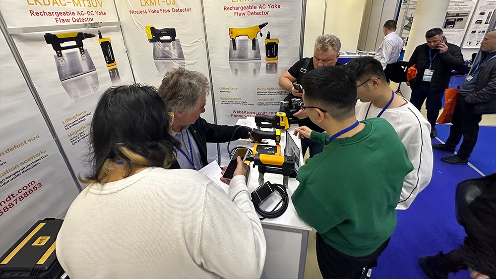 2024年4月15日,濟(jì)寧魯科檢測(cè)器材有限公司代表團(tuán)遠(yuǎn)赴俄羅斯莫斯科,參加2024年俄羅斯莫斯科NDT展。亮相本次展會(huì)的設(shè)備有聯(lián)合中國(guó)石油大學(xué)(華東)共同研發(fā)的ACFM交流電磁場(chǎng)檢測(cè)儀,自主研發(fā)的無(wú)線式磁粉探傷儀、管道磁粉探傷儀、角焊縫磁粉探傷儀、腐蝕測(cè)厚機(jī)器人等。儀器一經(jīng)亮相,便引起國(guó)際友人廣泛關(guān)注與一致好評(píng)。